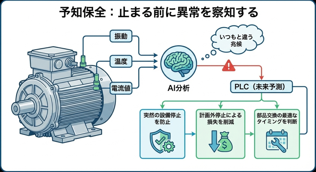 PLCは単に異常を検知するだけでなく、「近いうちに故障する可能性が高い」という未来予測を扱うようになっています。