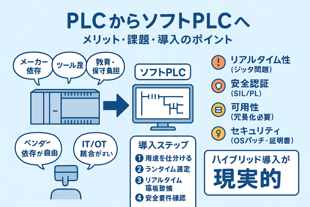 実務的には、ハイブリッド導入(従来PLCとソフトPLCの使い分け) が現実的な落とし所です。